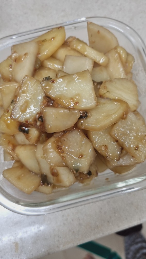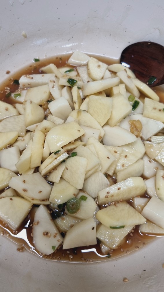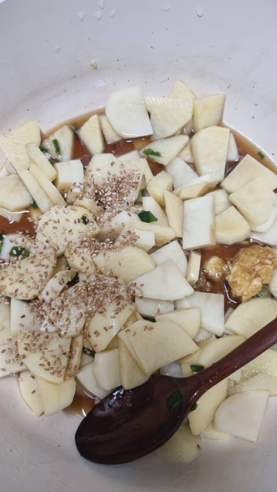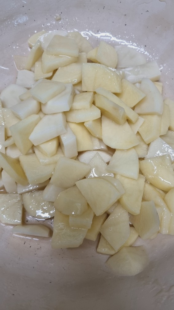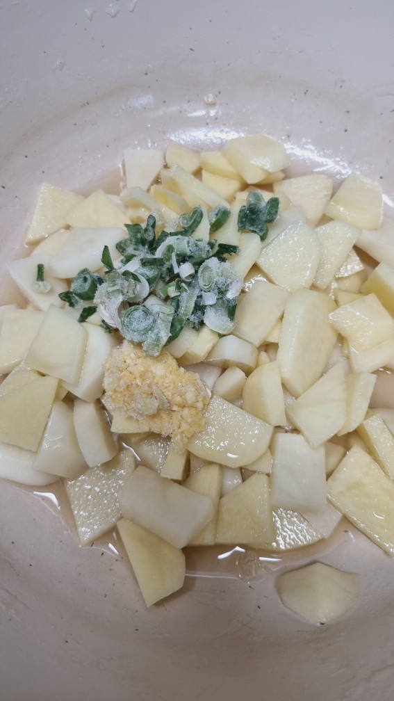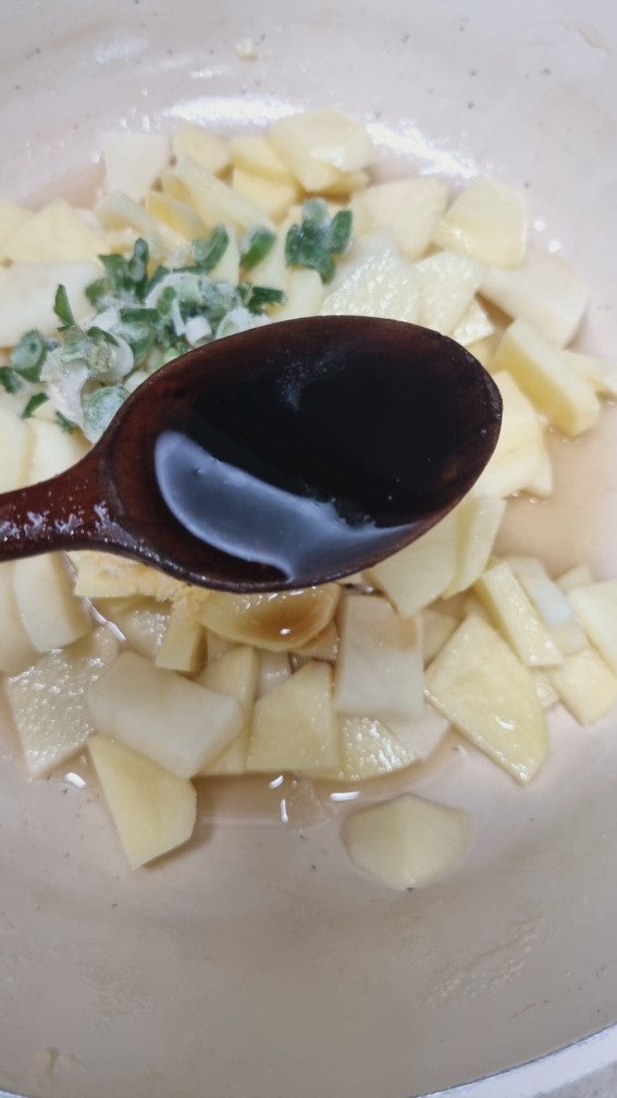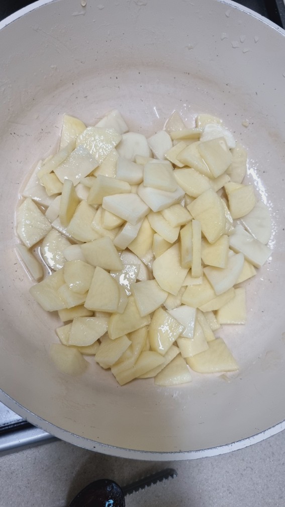 이 상태로 10분 정도 두면 감자의 수분과 전분기가 빠져나오면서 단맛이 입혀지게 됩니다.