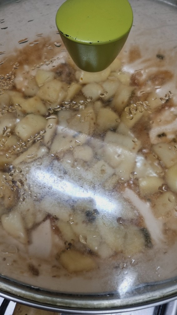 4. 감자가 눌어붙지 않게 섞어주며 익히다가 뚜껑 닫고 뜸 들여주기