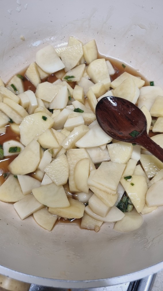 4. 감자가 눌어붙지 않게 섞어주며 익히다가 뚜껑 닫고 뜸 들여주기