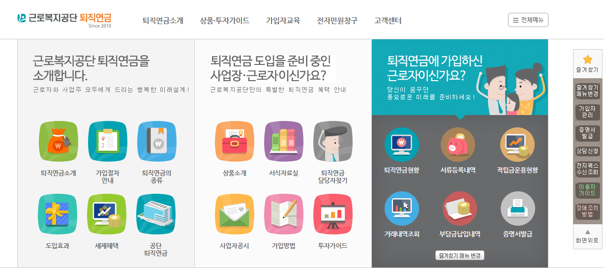 근로복지공단 퇴직연금 조회방법(기 가입자)