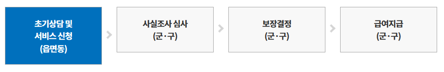 각 주소지 읍·면·동 행정복지센터를 통해 상담과 신청을 마치게 되면 군 또는 구에서 이에 대한 사실조사와 심사가 들어가게 됩니다. 이후 조건에 해당이 되는 경우 군 또는 구에서 해당 급여를 지급하게 됩니다.