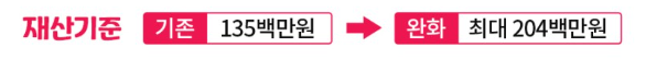 재산 - 204백만 원 이하(주거용 69백만 원 추가공제)(변경기준: 23년 4월 26일)