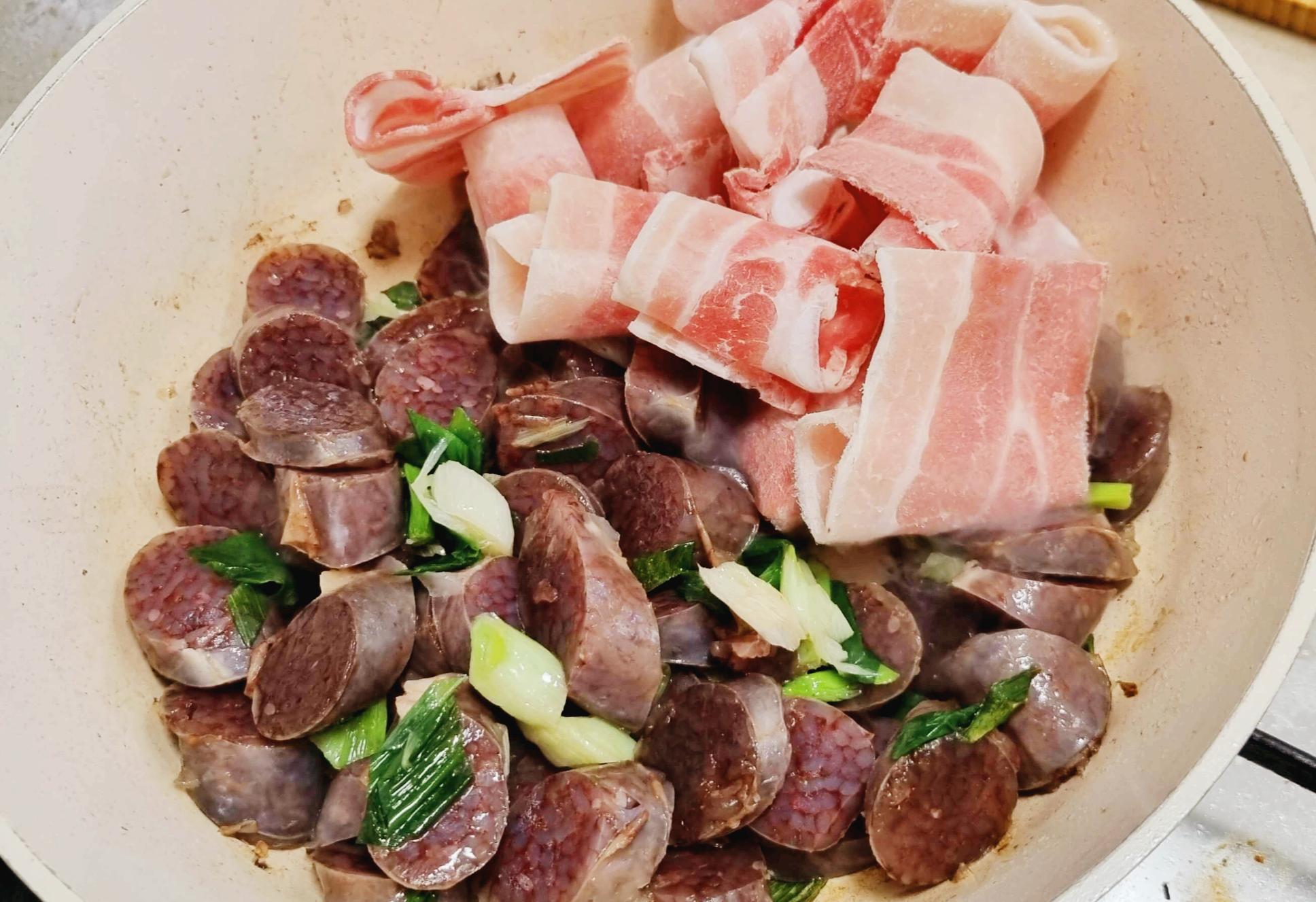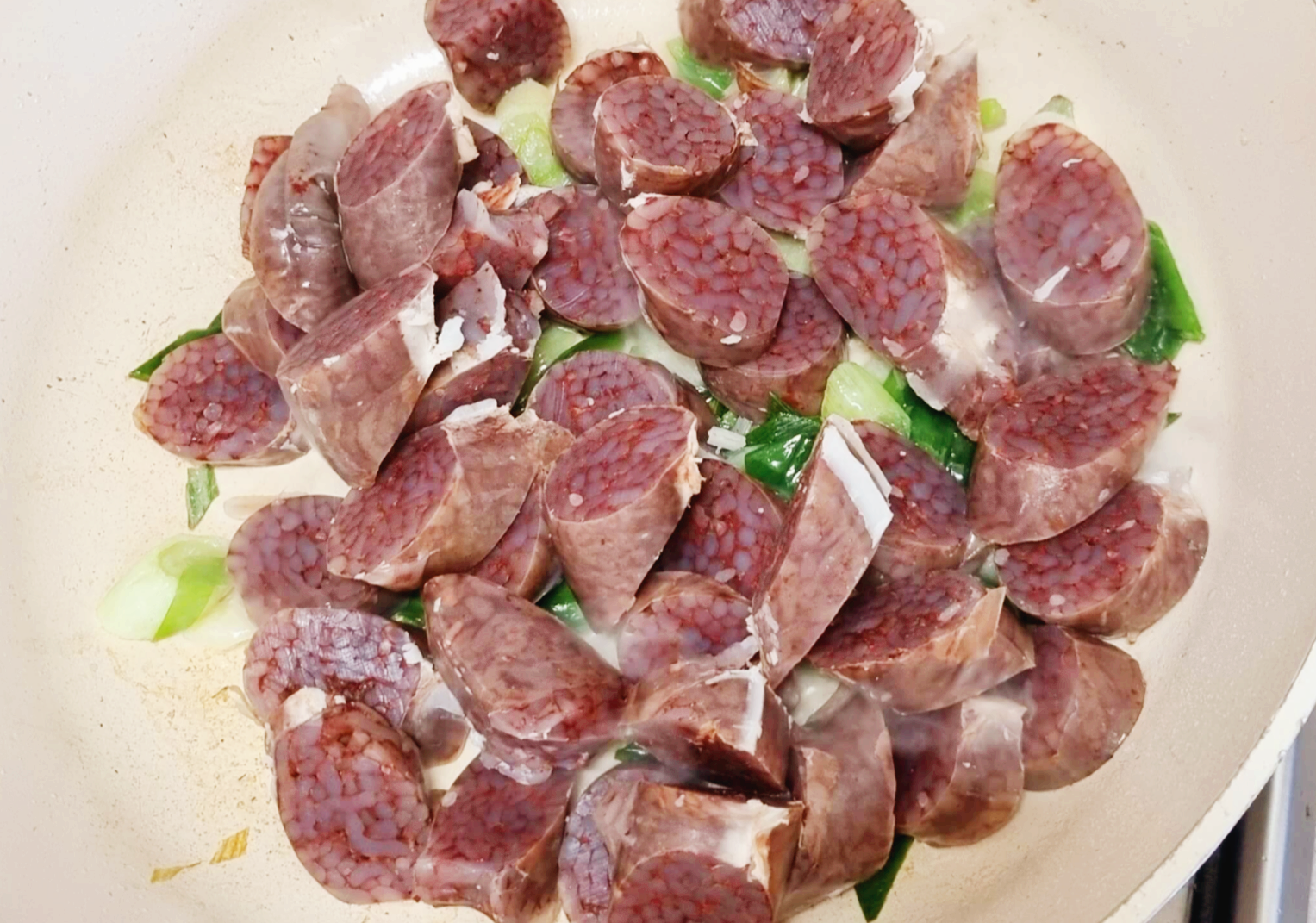 2. 어느 정도 파기름이 나오면 순대를 넣어줍니다.