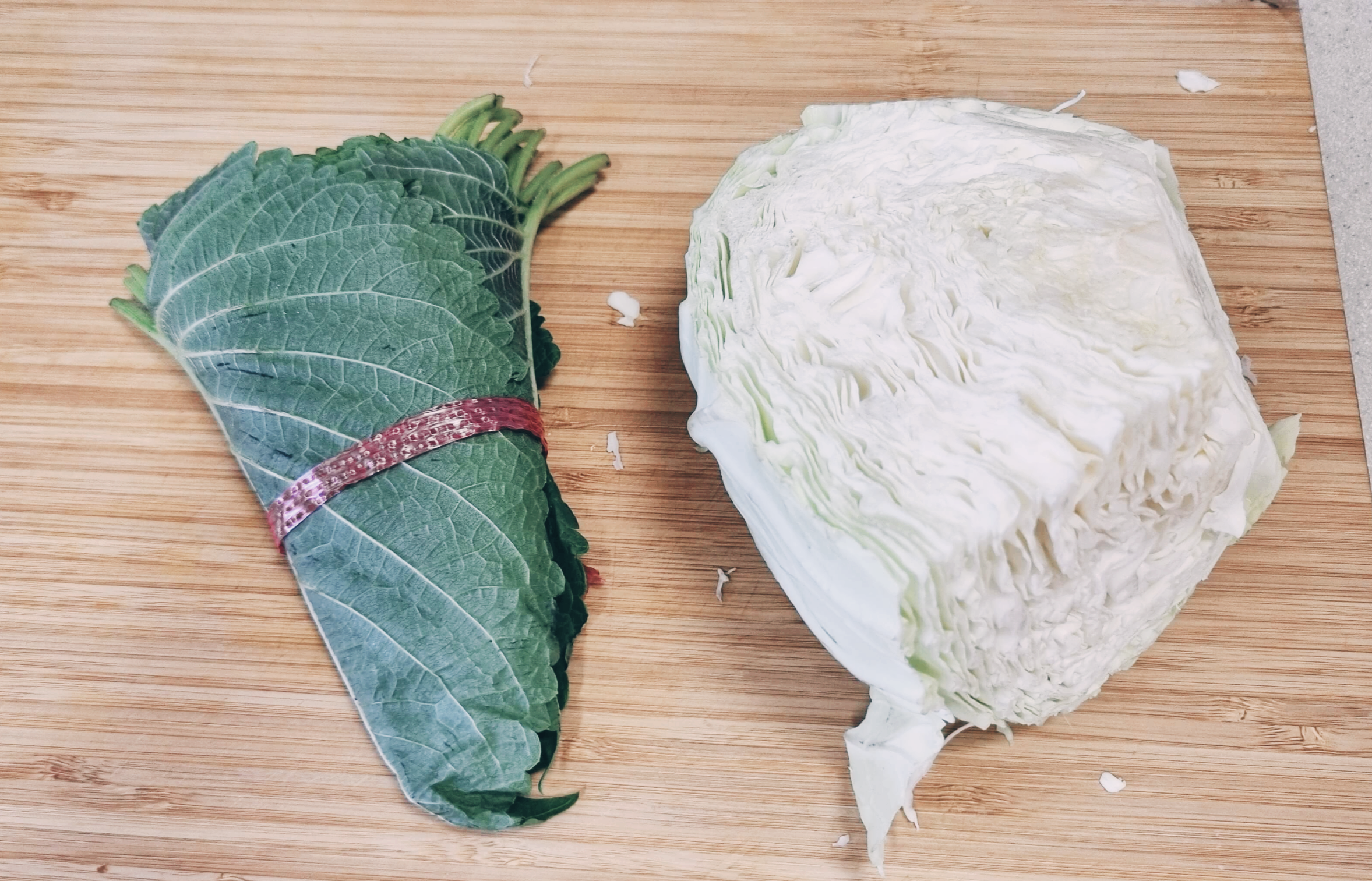양배추와 깻잎을 썰어줍니다.