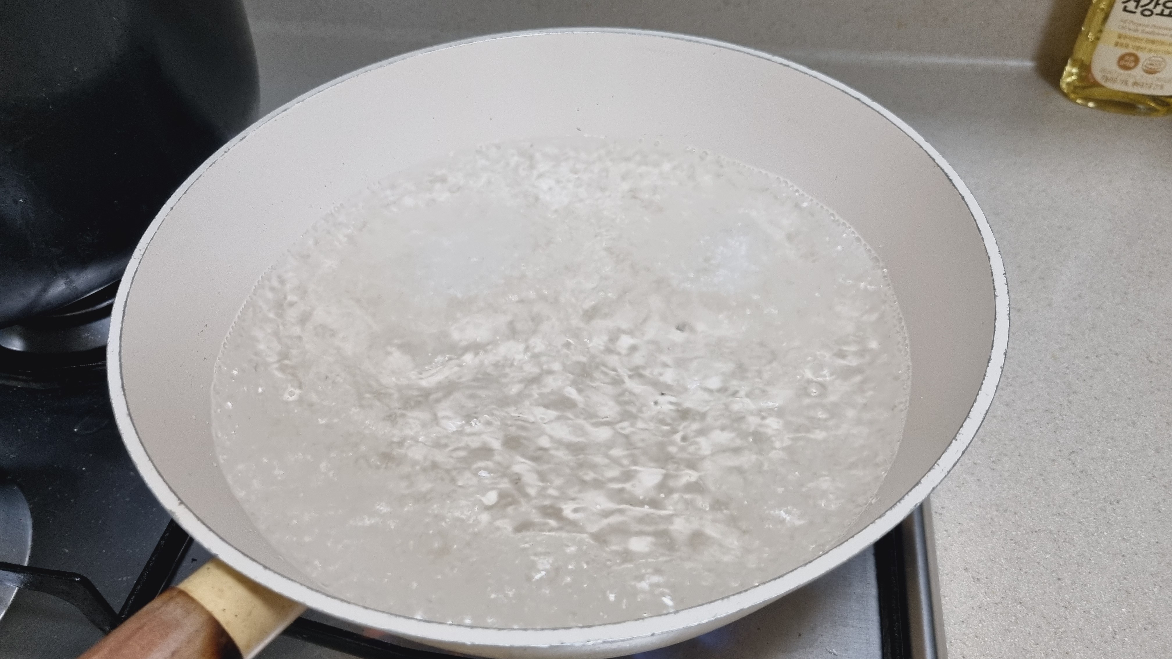 3. 물이 끓으면 시금치 투입 (시금치 데치기)
