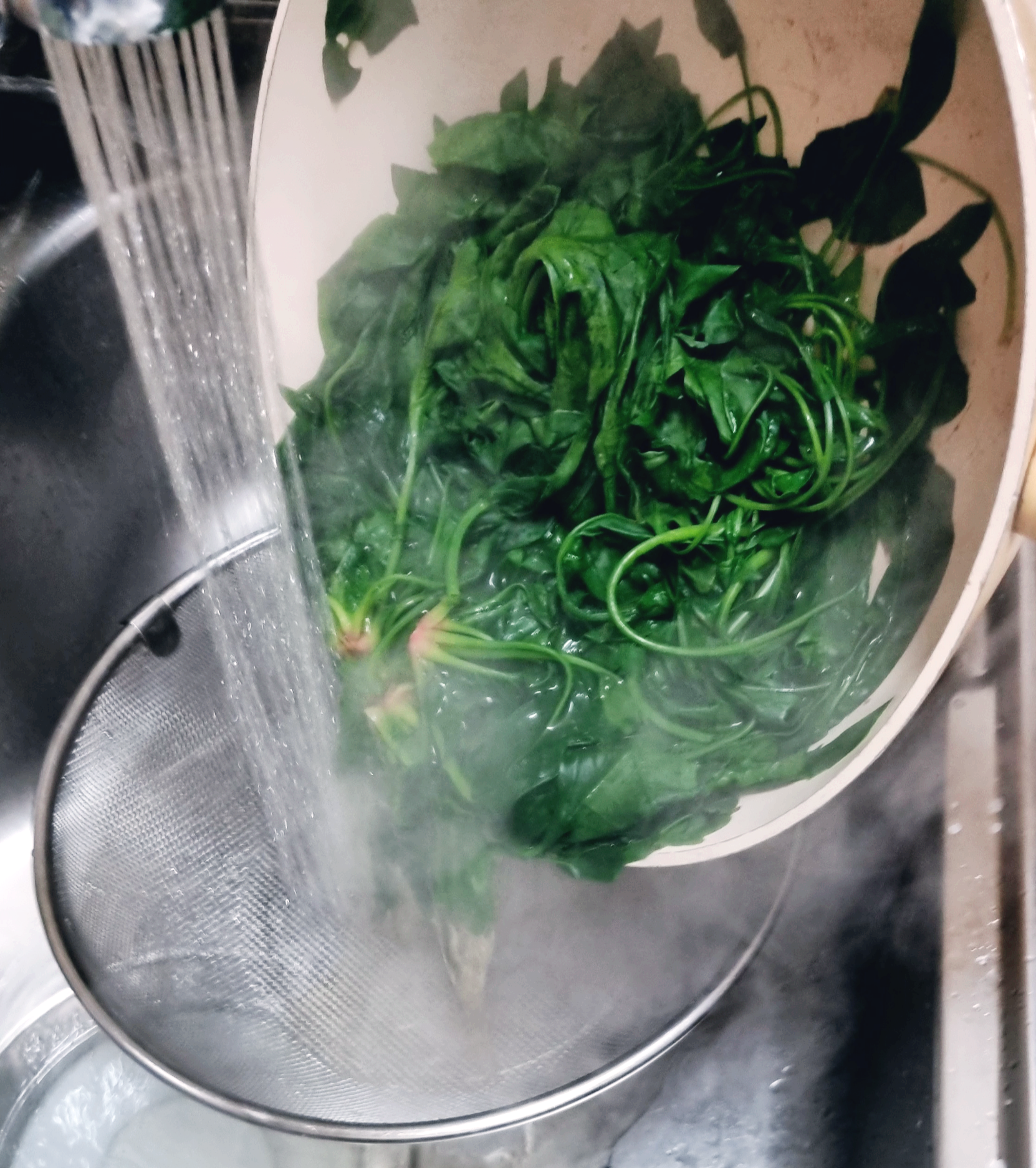 시금치는 나물로 활용하기 위해 한번 데쳐서 사용을 해야 하는데요.