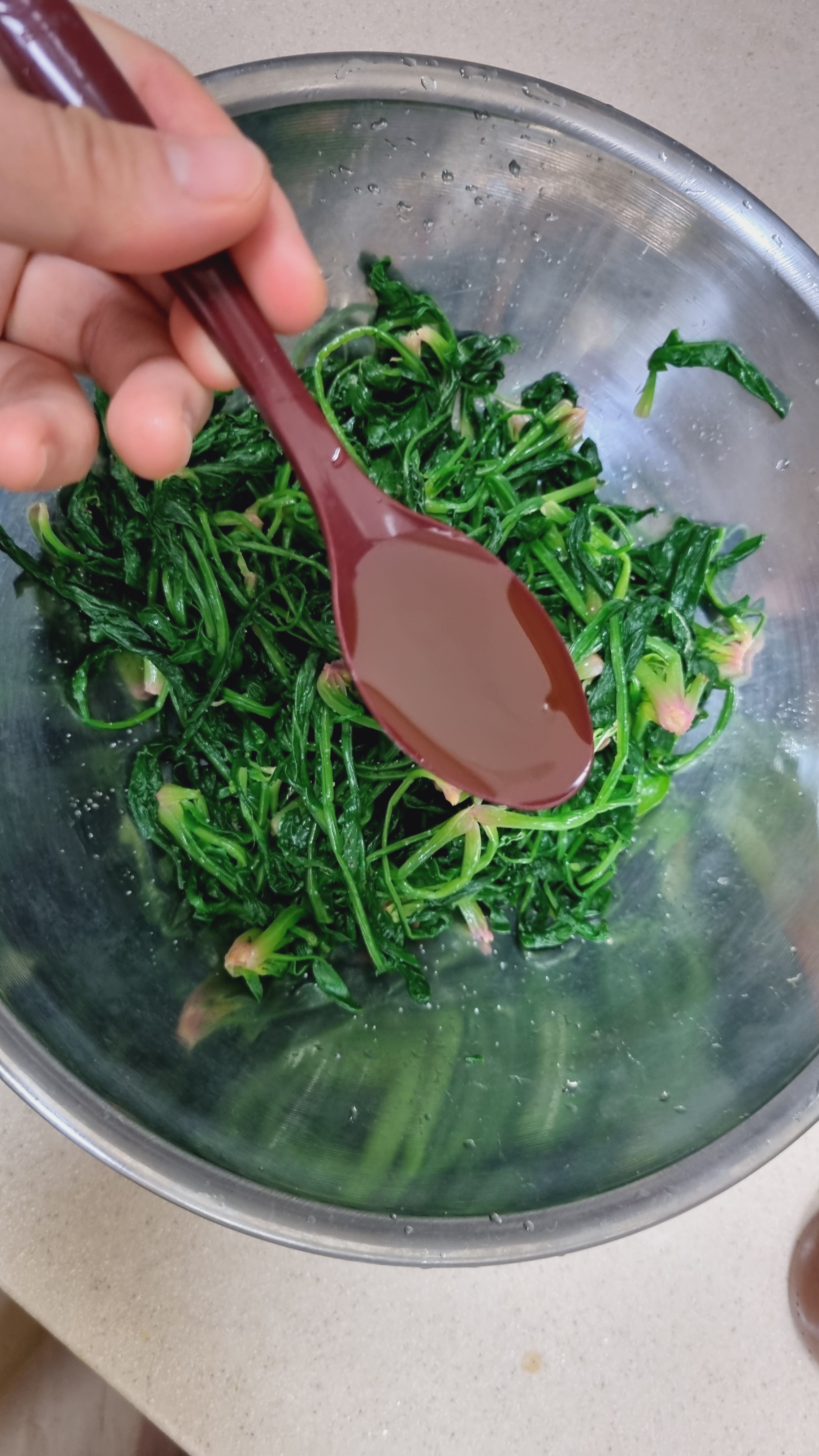 시금치 한 단을 했는데 물기를 짜보니 이 정도 양이 되네요.