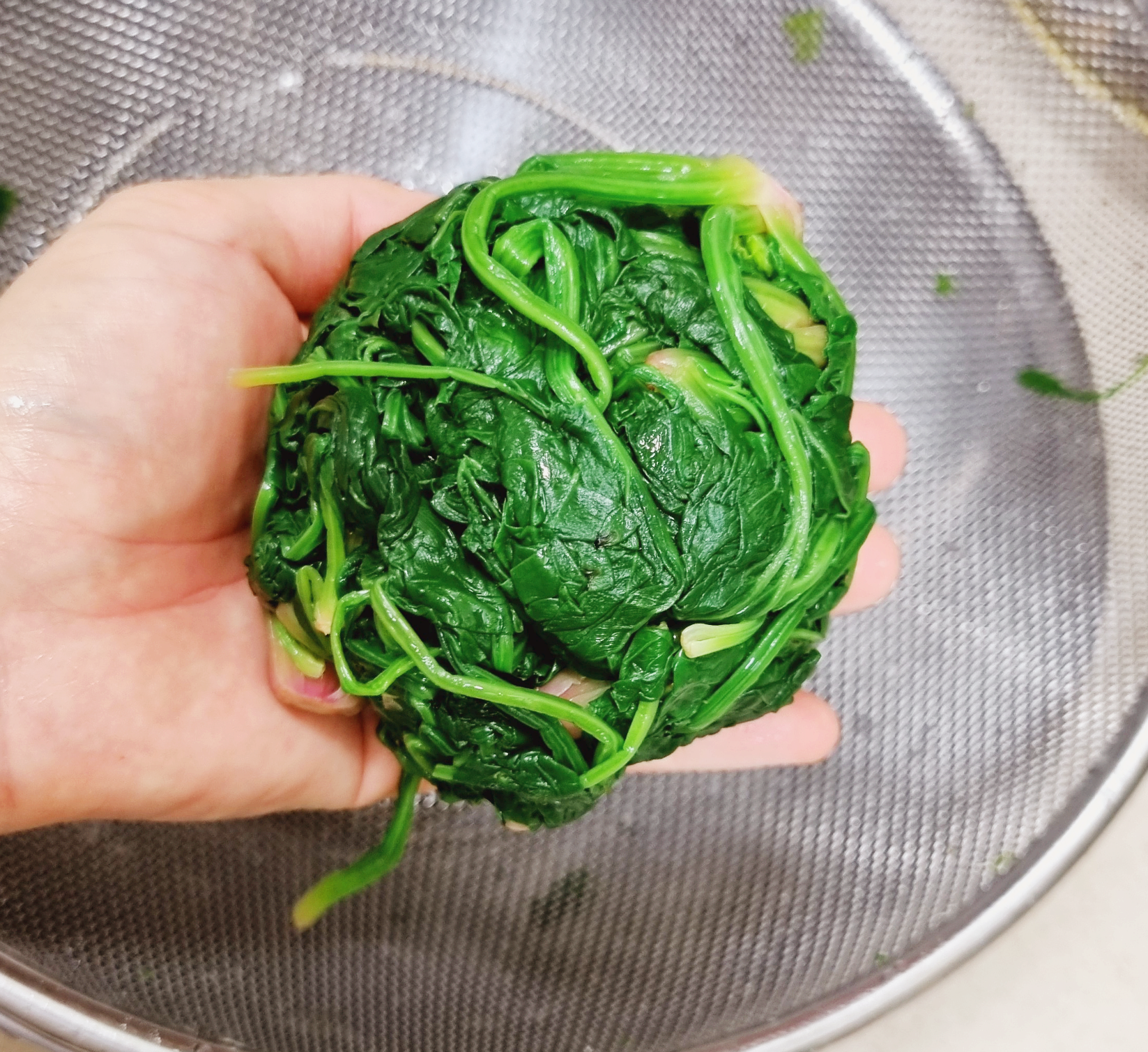 양념을 하기 위해 시금치를 살짝 짜줍니다.