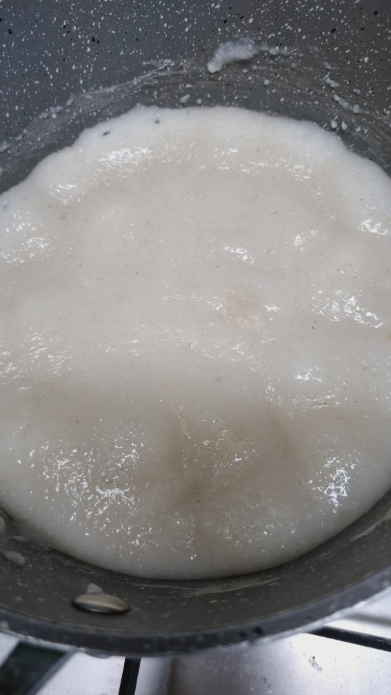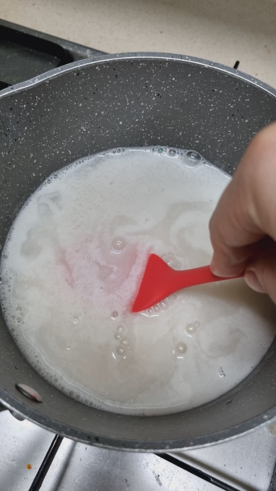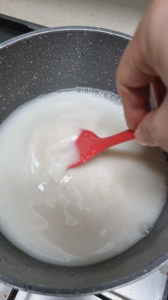 찬물에서부터 서서히 저어서 쌀가루들을 풀어줍니다.