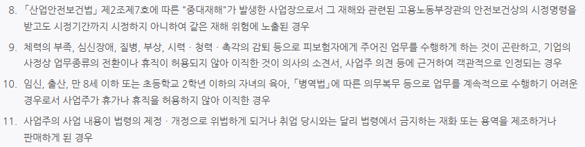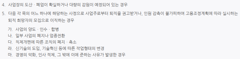 - 해고, 권고사직, 명예퇴직 등의 경우