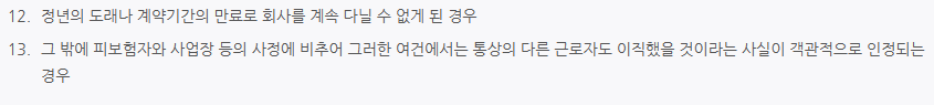 - 해고, 권고사직, 명예퇴직 등의 경우