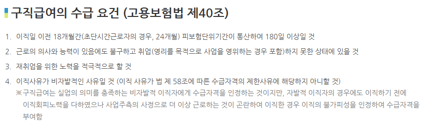 - 이직(퇴직) 전 18개월 간 피보험단위기간이 180일 이상이 될 것