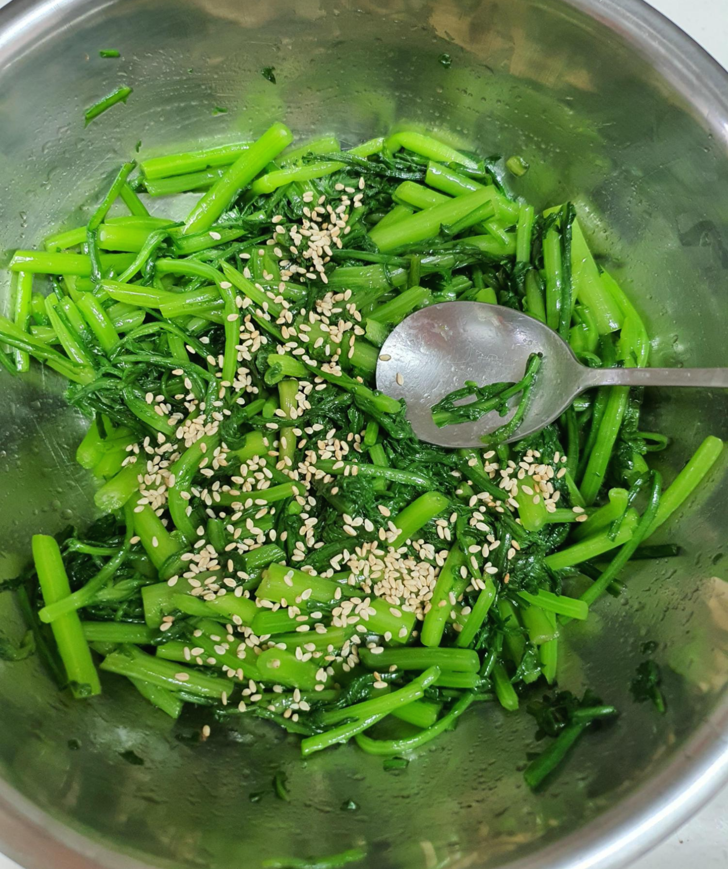 - 너무 오래 데쳐 놓으면 축 쳐져서 식감이 떨어져요.