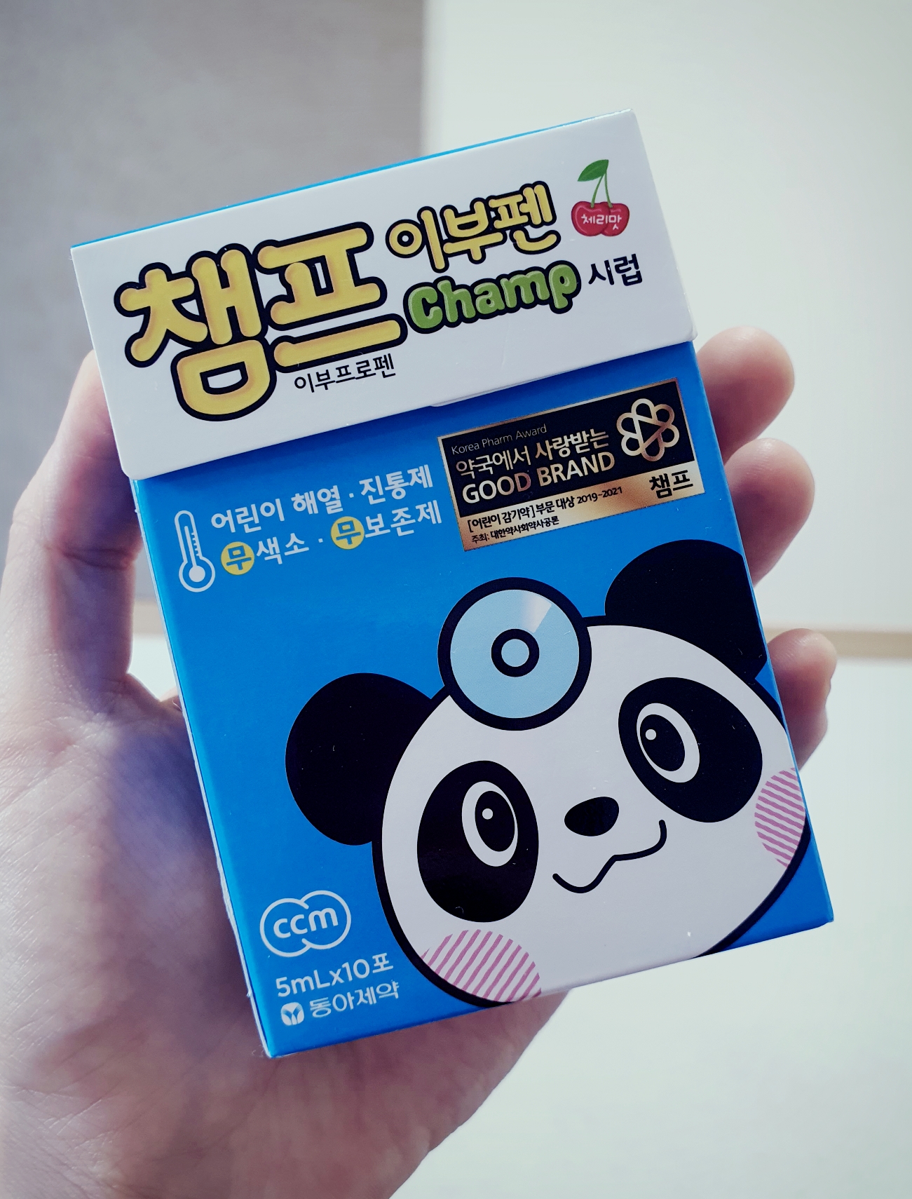 이부펜 계열의 챔프(파랑)를 먹였어요. 어플에는 생후 1년 이후에 먹이라도 되어있지만.