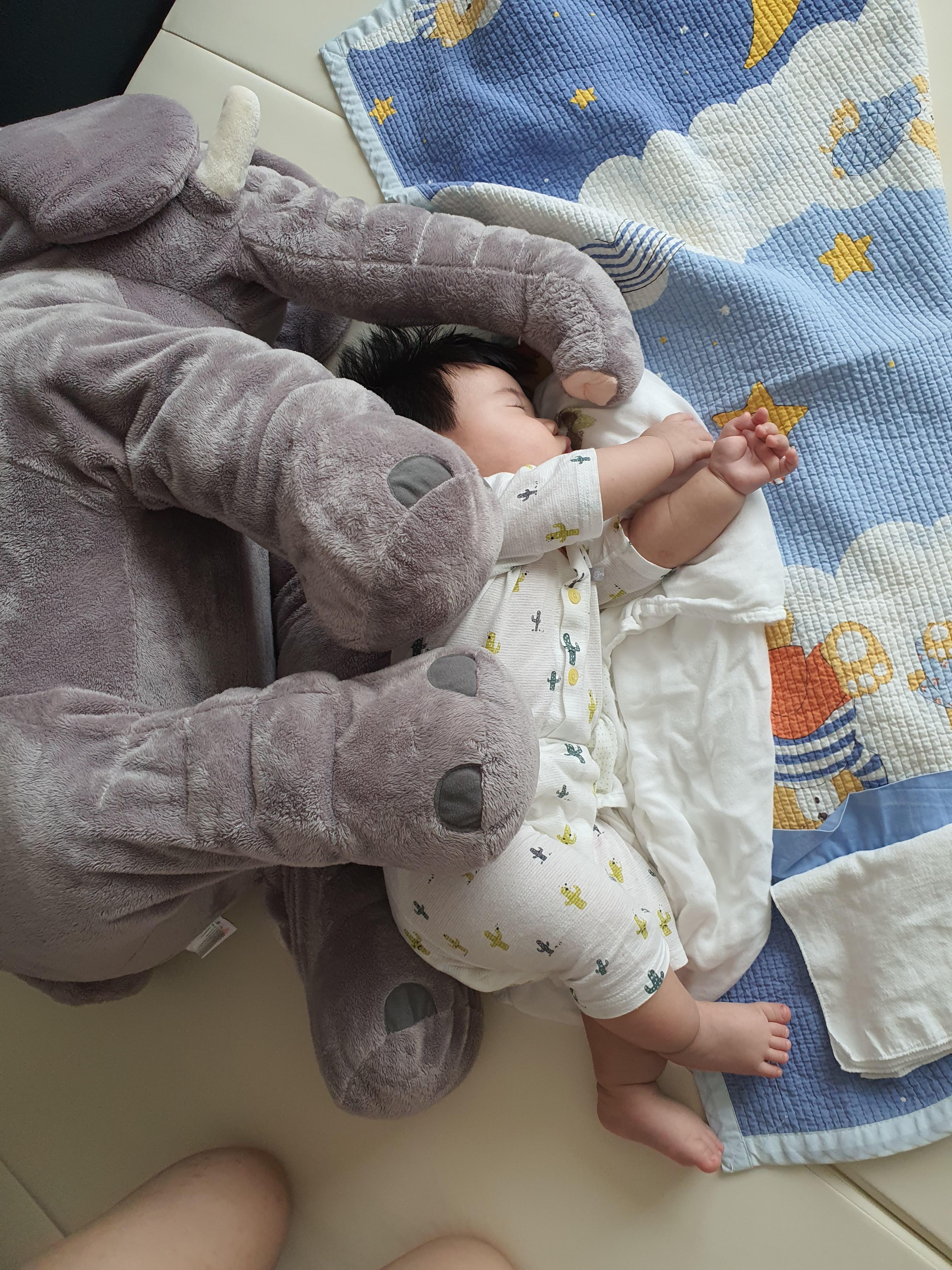 저녁 7시 반에 시간 맞춰 목욕 후 수유하고 트림 후 바로 재우기를 반복했어요. (근데 이건 신생아 때부터 쭉 해왔었던 거라 어려움은 전혀 없었어요.) 그러다 보니 어느새 아기는 생후 6개월.