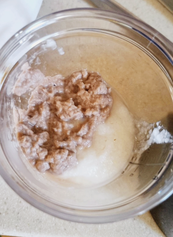 고기만 갈면 잘 안 갈려서 육수도 걸러서 조금 넣어주었습니다.