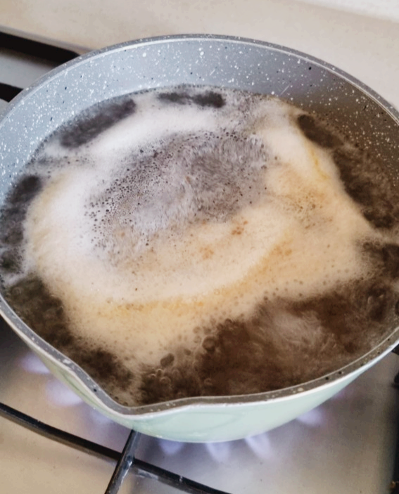 어느 정도 묽기가 단단해지고 끓어오르면 불을 끄고 뚜껑을 닫아 뜸을 들여줍니다.