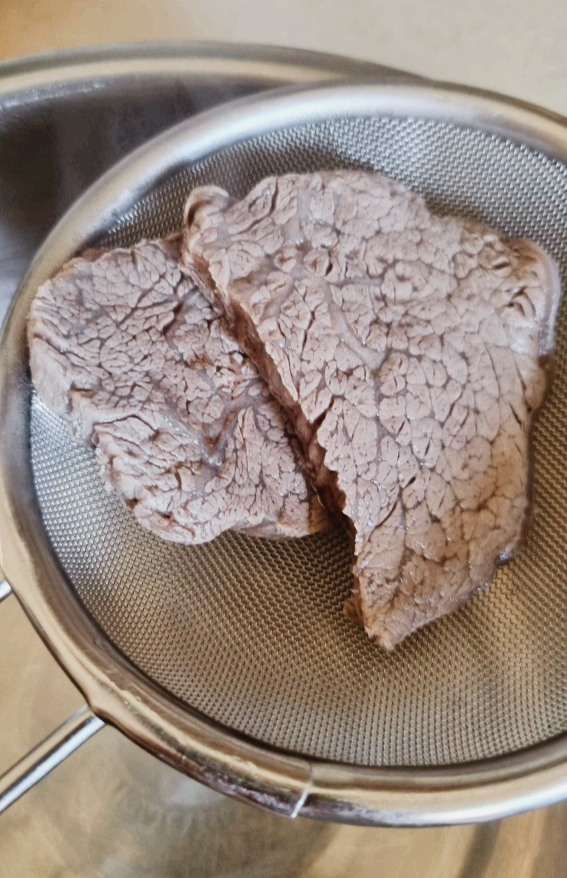 익은 소고기는 조금 식혀서 믹서에 넣어주세요.