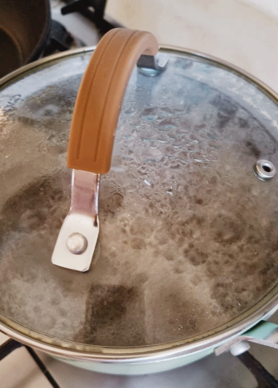 어느 정도 묽기가 단단해지고 끓어오르면 불을 끄고 뚜껑을 닫아 뜸을 들여줍니다.