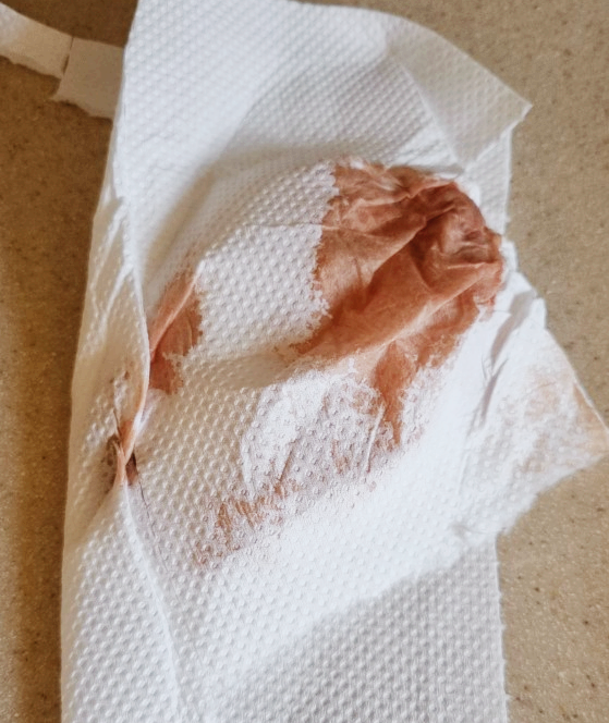 키친 타월을 여러 겹 둘러 핏물을 제거해 주었습니다.