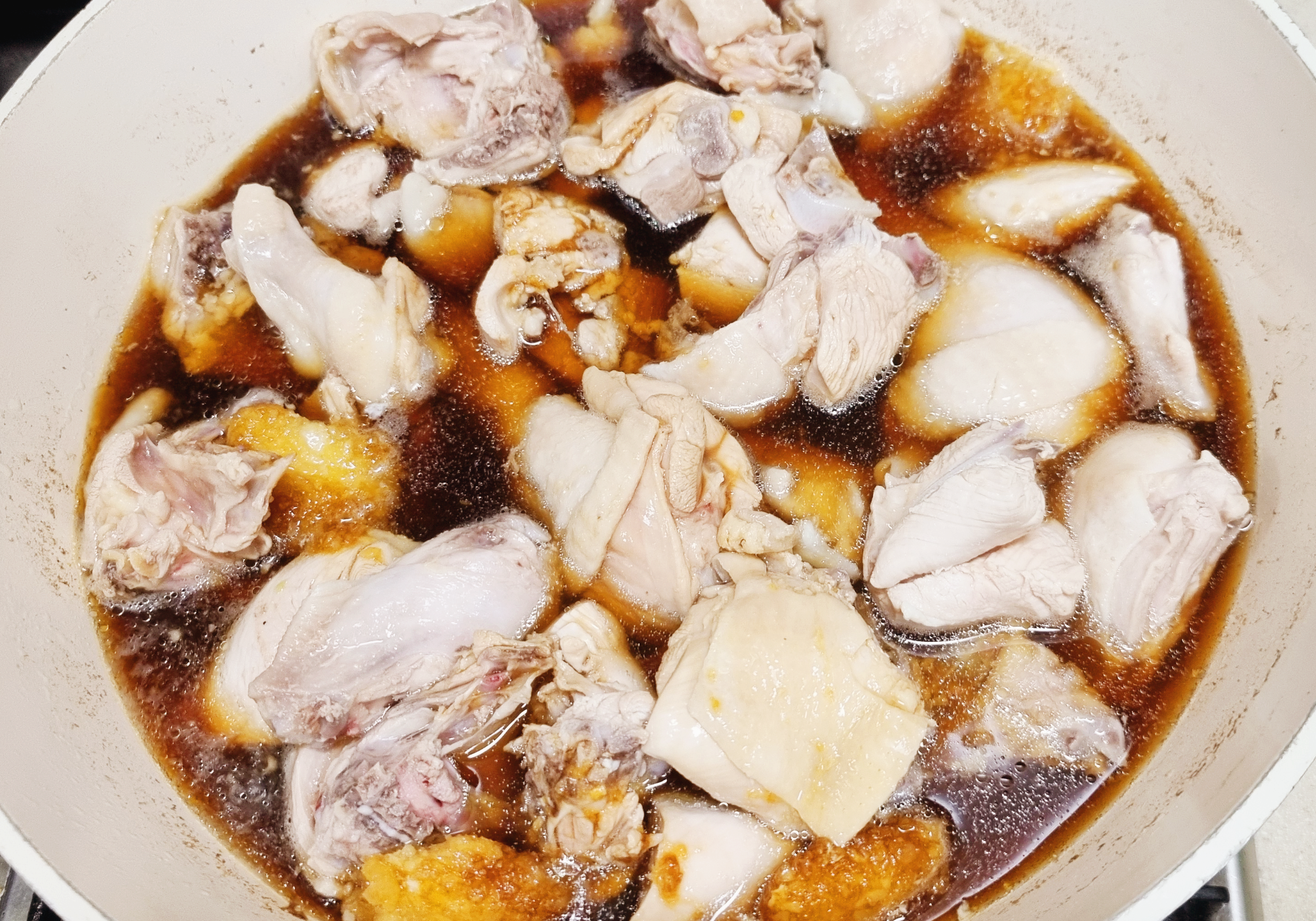 5. 닭에 물이 자박하게 잠길 정도로 3-4컵 물을 부어줍니다.