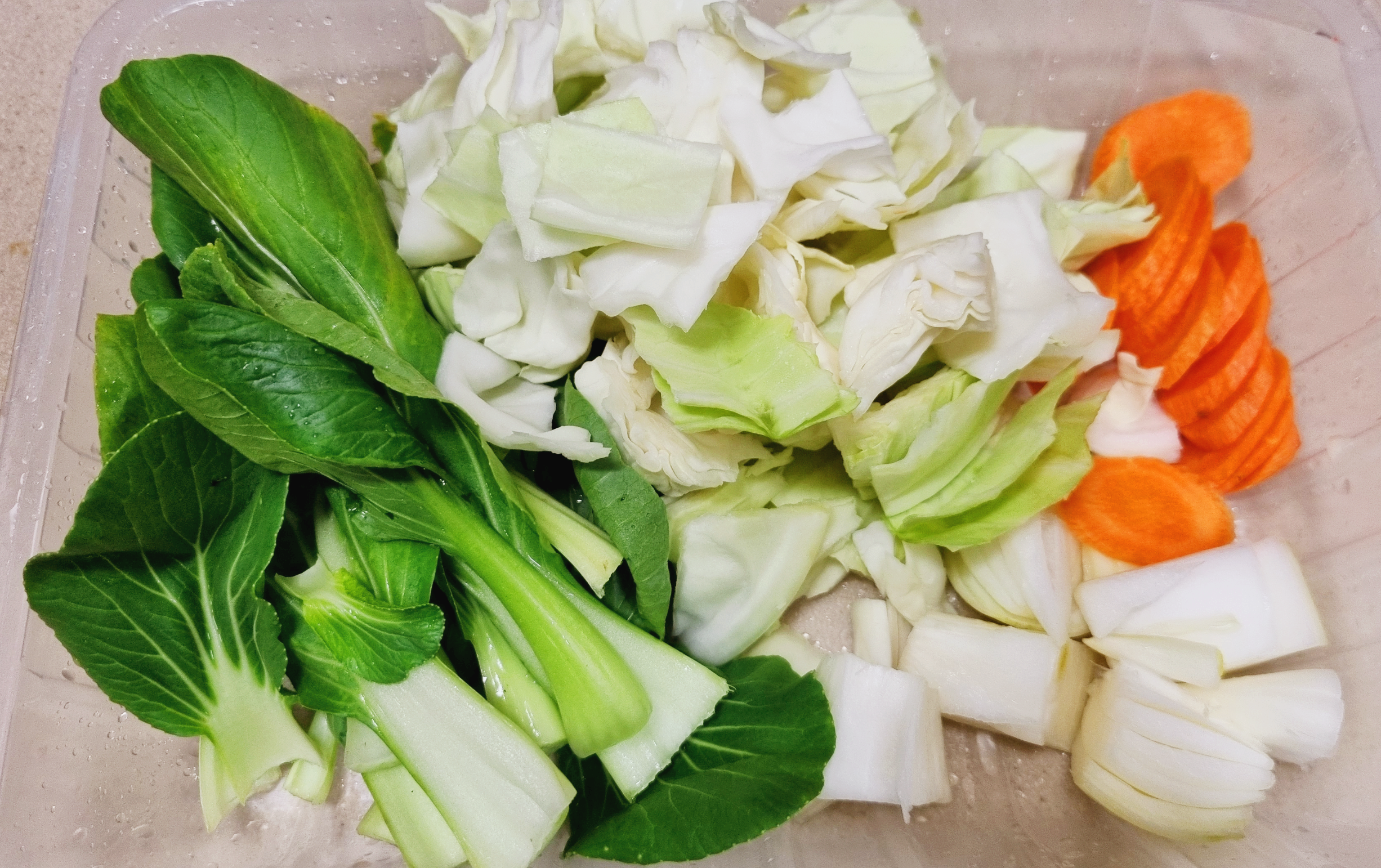 6. 준비된 야채 중 대파와 당근, 청경채는 빼고 나머지 야채들을 모두 넣어줍니다.