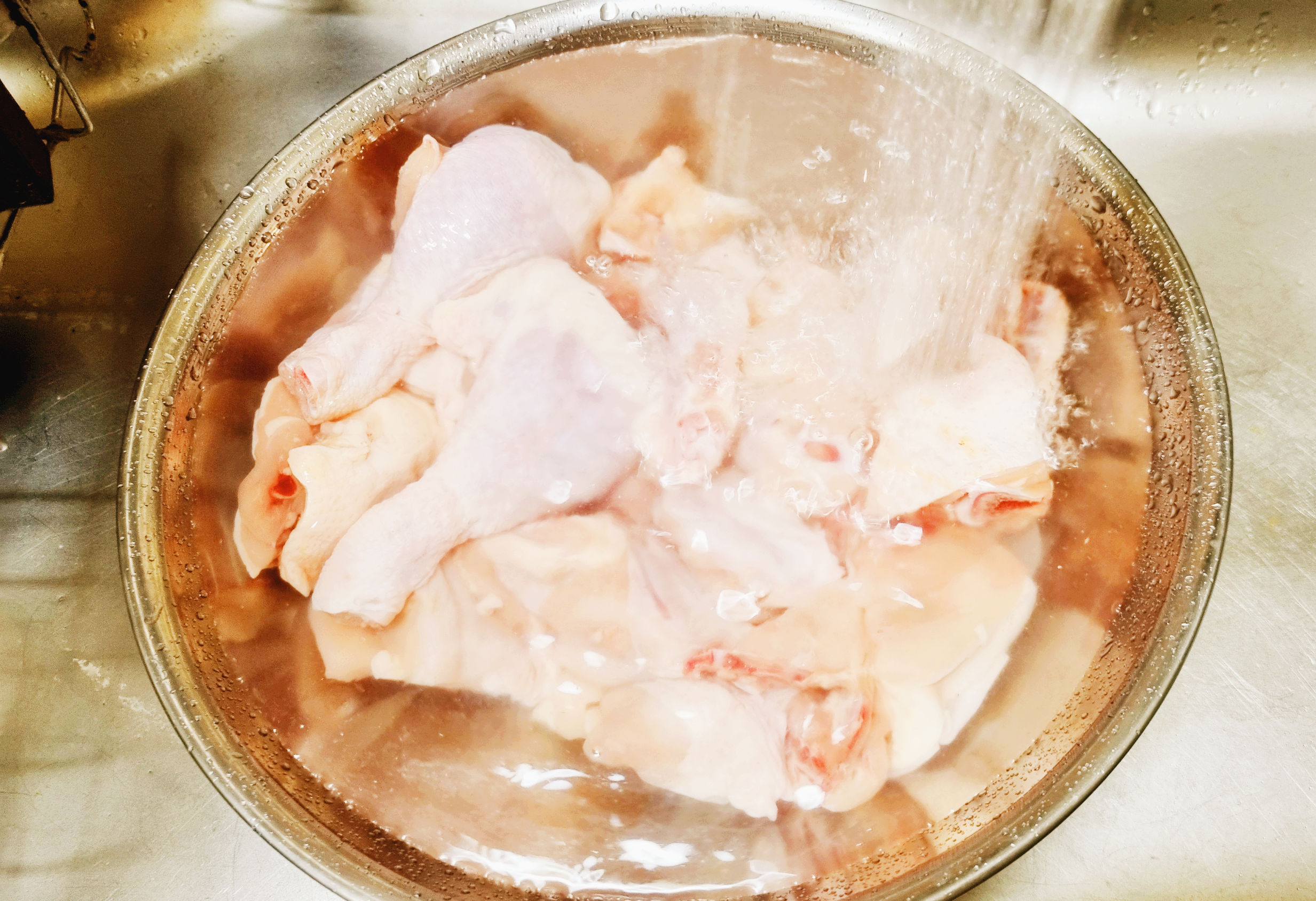 1. 혹시나 모를 이물질에 대비해서 준비한 생닭을 물에 씻어주세요.
