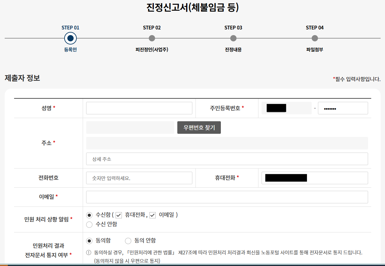 관할 고용노동부에 방문이나 우편으로 접수하실 수 있습니다.