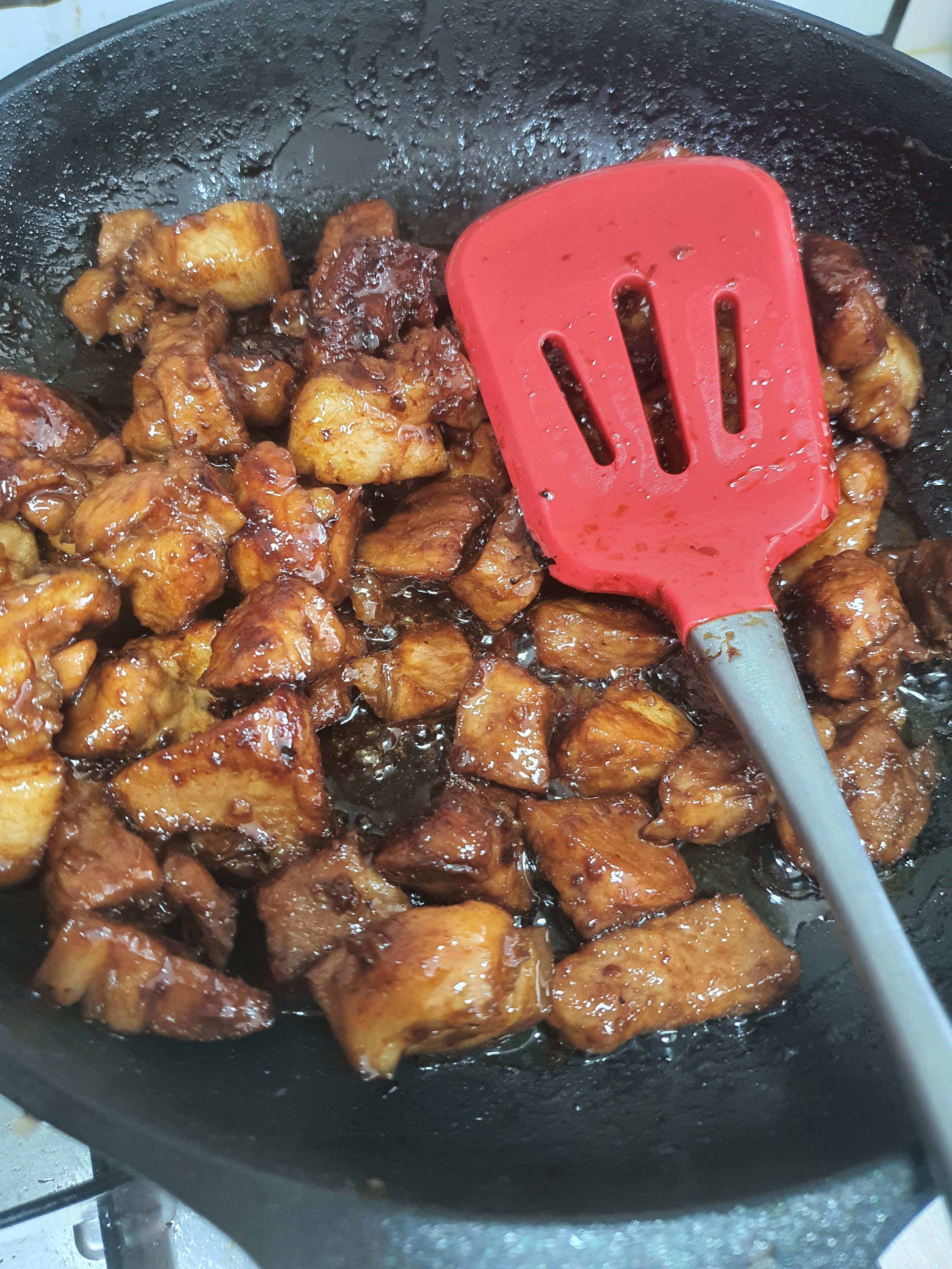 자 이제 마무리! 거의 다 졸여졌으면 확 센 불로 올려 고기들을 마구마구 저어주세요.