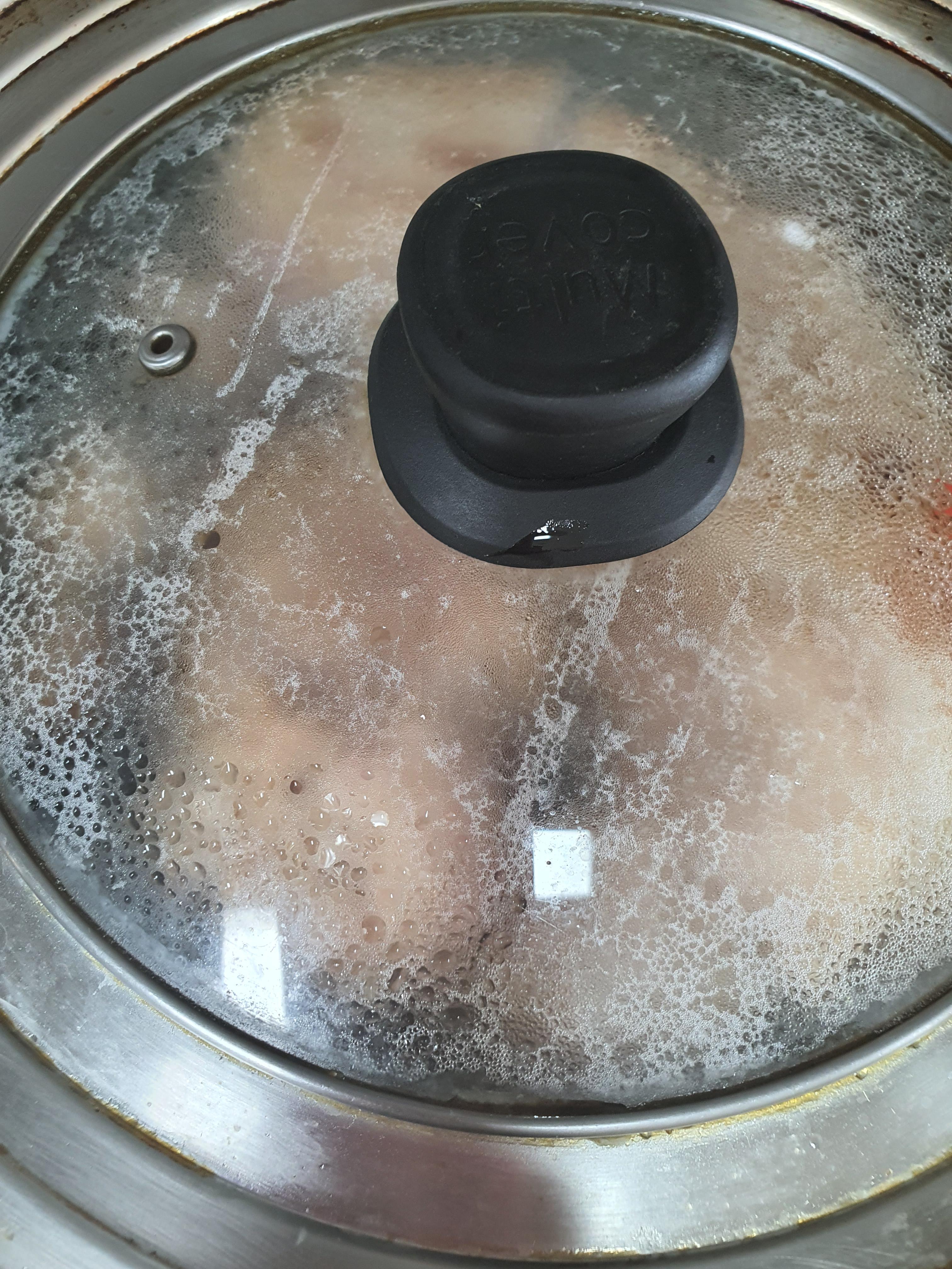 보글보글 끓으며 양념 색이 좀 진해지면 중불로 낮추어 계속 익혀 줍니다.