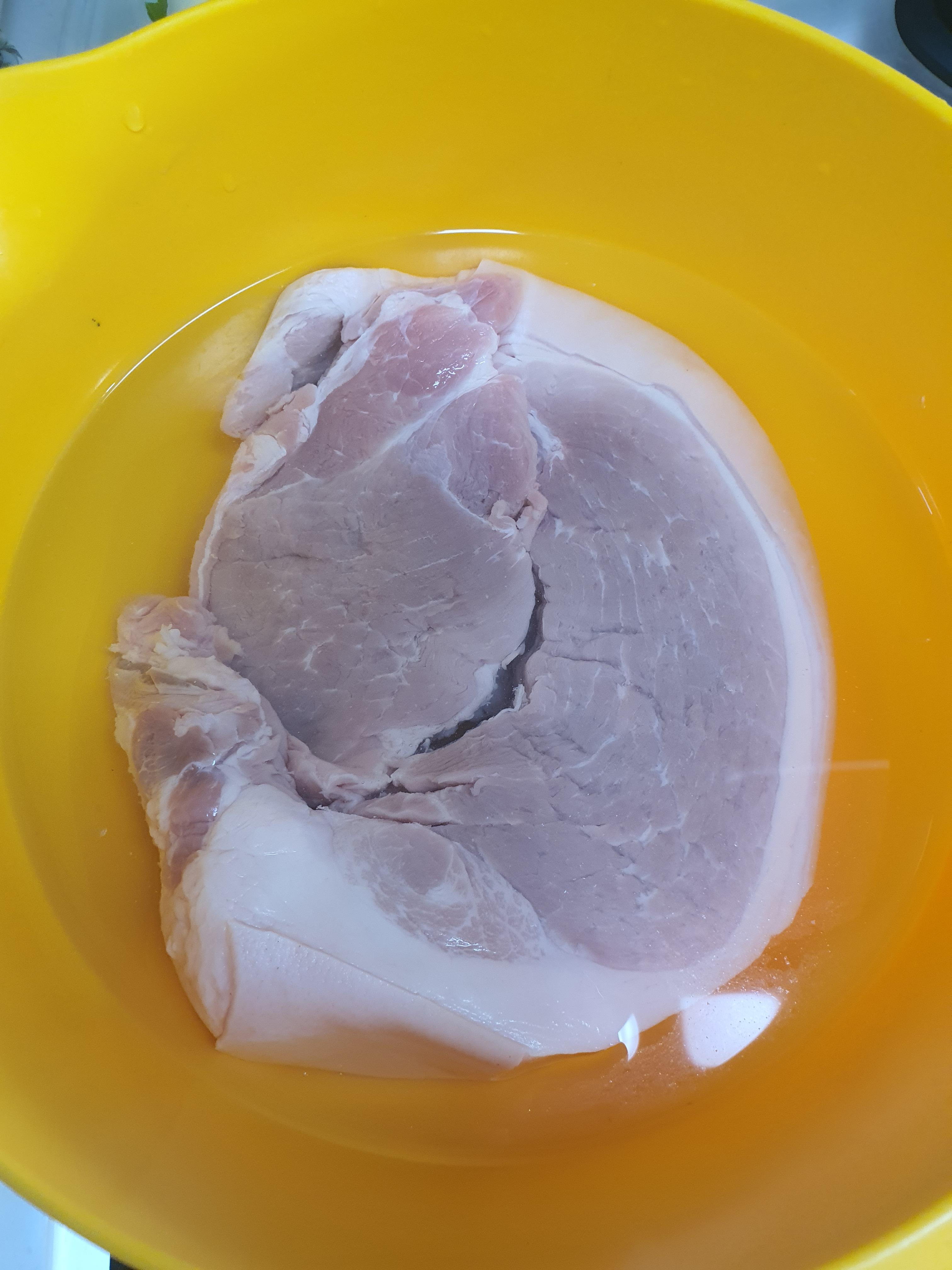 우선 돼지고기 뒷다리 살을 준비합니다. 저는 수육용으로 해 먹으려고 샀던 건지 조림한다고 꺼냈어요