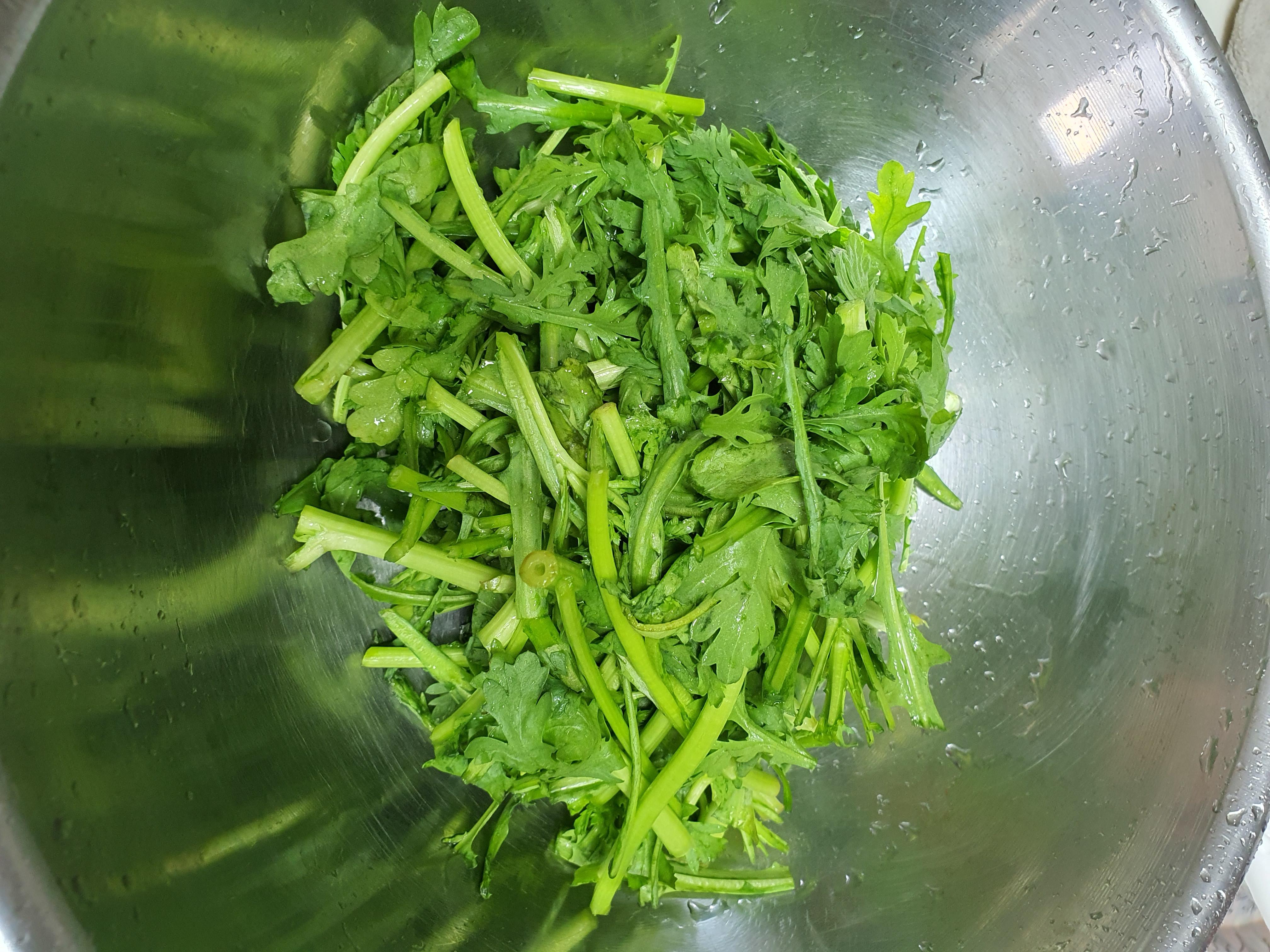 3. 쑥갓은 먹기 좋은 크기로 잘라주세요. (전 잘라서 절여주었어요.)